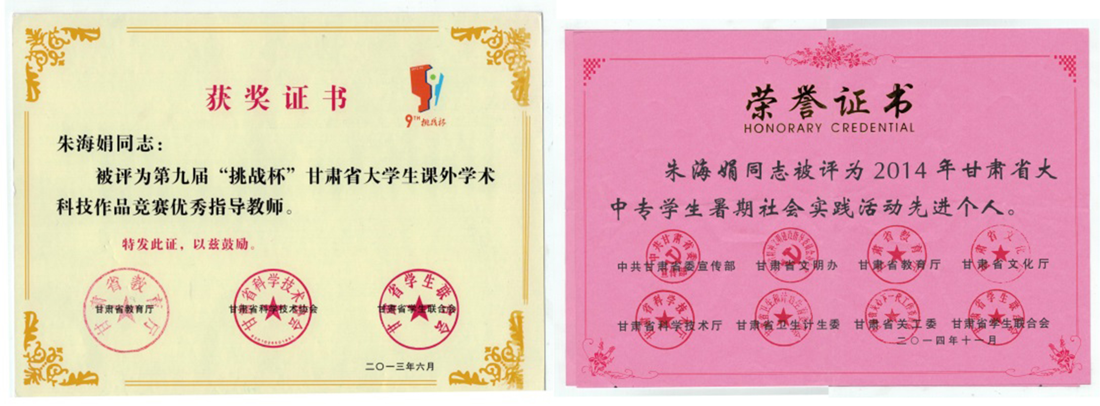 朱海娟:祖籍安徽,教育学硕士,国家二级心理咨询师,酒泉职业技术学院心理健康教育中心专任教师、首届师德标兵。执教20年来,她始终奉行本色做人、出色做事的职业操守,从关注学生心灵入手,育心启智,立德树人,生动诠释了“爱就是教育”的真谛。