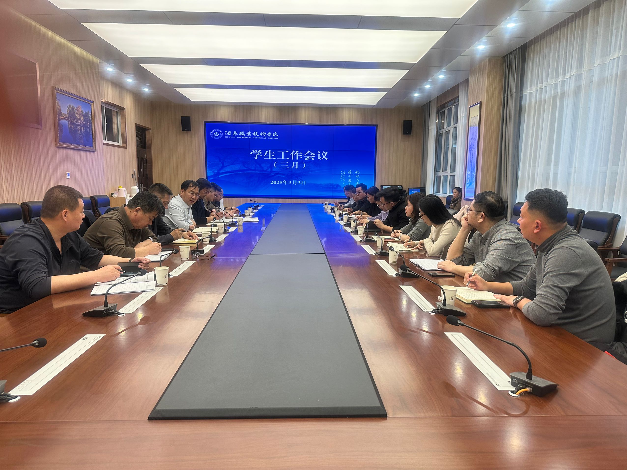 要闻快递 > 正文2025年3月3日下午,学校在弘毅楼A106会议室召开3月份学生工作会议。会议由学校党委委员、副校长施荣主持。学生处、后勤管理处、应急安稳处、校团委负责人及各二级学院分管学生工作领导参加会议。