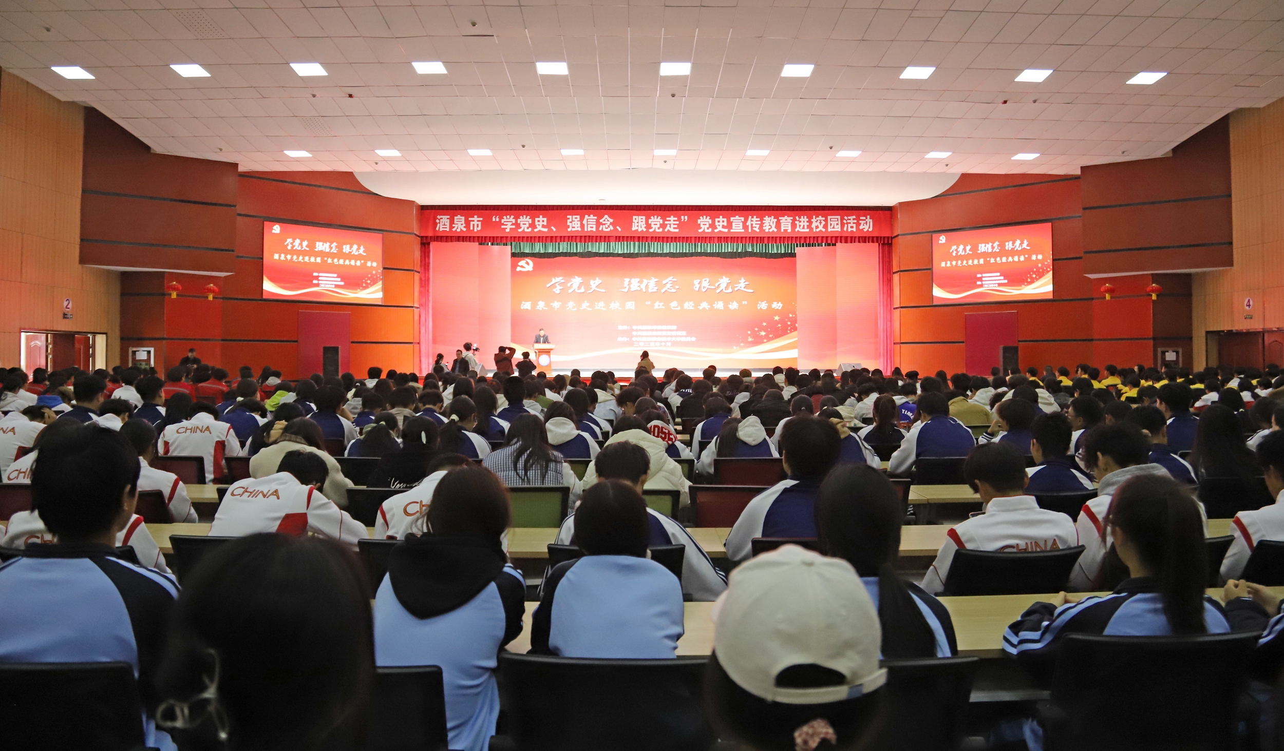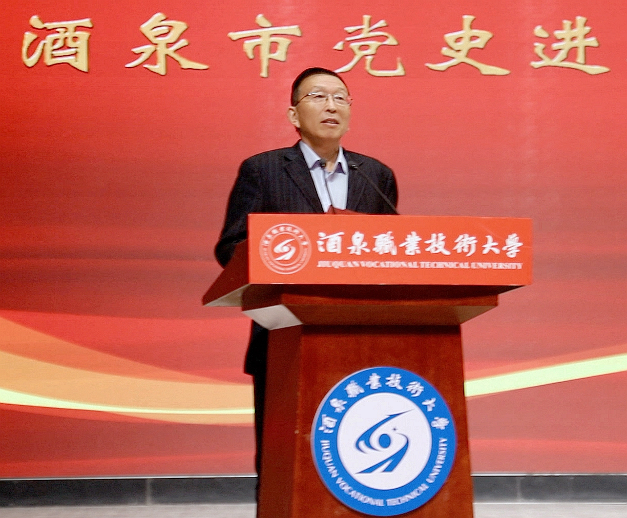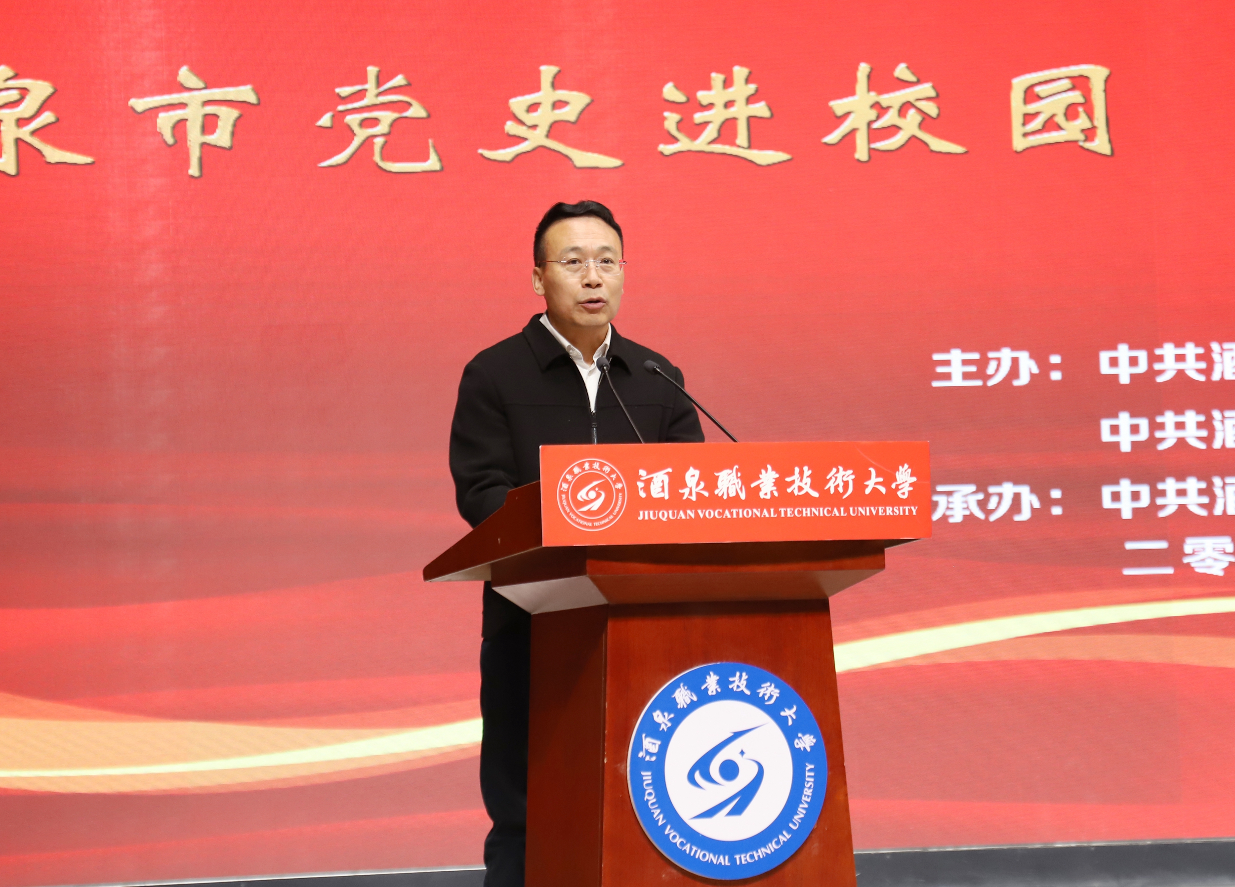 易志军致辞表示,此次活动是在新时代深化党史学习教育、传承红色基因的一项重要举措,也为纪念世界反法西斯战争胜利80周年、弘扬伟大抗战精神提供了深刻而鲜活的载体。广大师生要将今天的学习成果,转化为推动学校各项事业高质量发展的实际行动,以更加昂扬的斗志、更加务实的作风,奋力谱写酒泉职业技术大学发展的新篇章,为助力地方经济社会发展、为建设教育强国、为实现中华民族伟大复兴而团结奋斗!