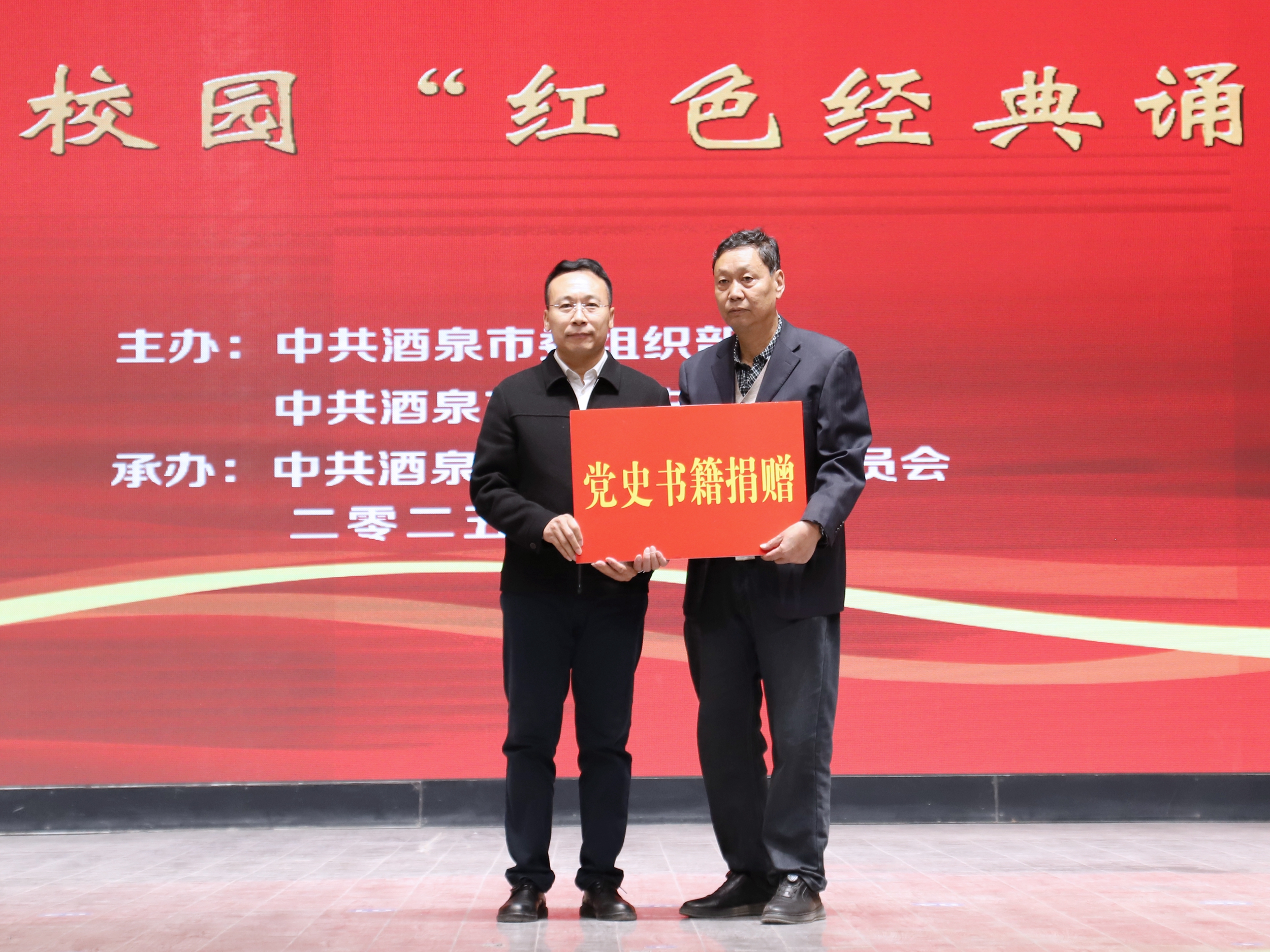 酒泉市委组织部、市委党史研究室向我校捐赠了党史书籍。